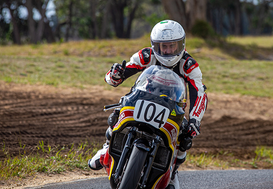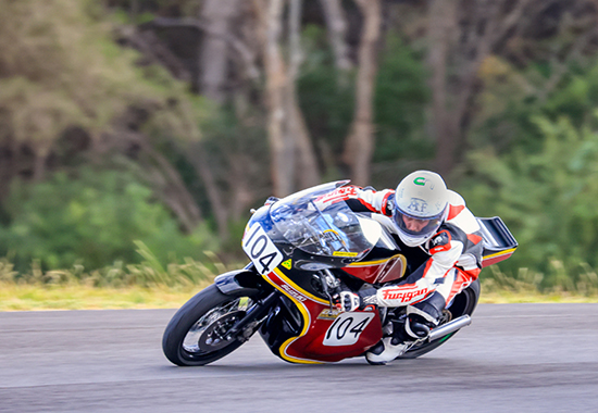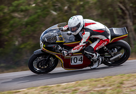 Rather than opting for the modern steed, the team took up an offer from Andrew Burford to ride his 1976 TR 750 Suzuki two-stroke triple at the Australian Historic Road Racing Championships.