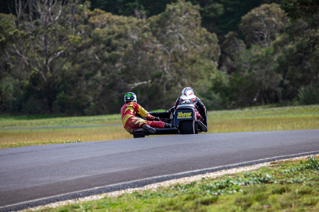 After enjoying his time racing a vintage BSA outfit at Sellicks Beach earlier this year, Royce was given the opportunity to take on some extra horsepower with a ride on a road racing sidecar at Mac Park recently.