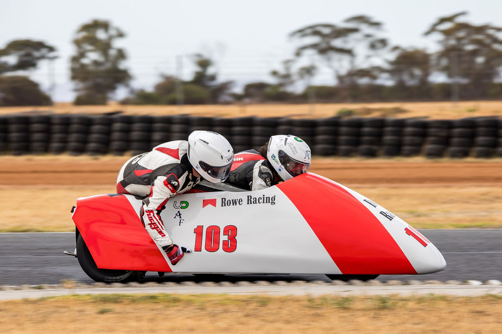 “Having done more than 1000 laps at Mallala on the solo, I’m still making the adjustment of changing my lines for the sidecar. I’m taking advice from experienced riders as well as experimenting myself. It doesn’t help that over the past few outings on the bike we have had front end issues, which we have put down to being the front shockers being shocking.